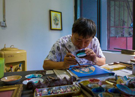 Painting on leaf veins as thin as a cicada’s wings is not easy. First, the colors need to be applied carefully, sometimes up to thirty layers. Then, lines must be drawn on the uneven surface of the leaf veins. To achieve smooth and flowing lines, it requires decades of painting experience.