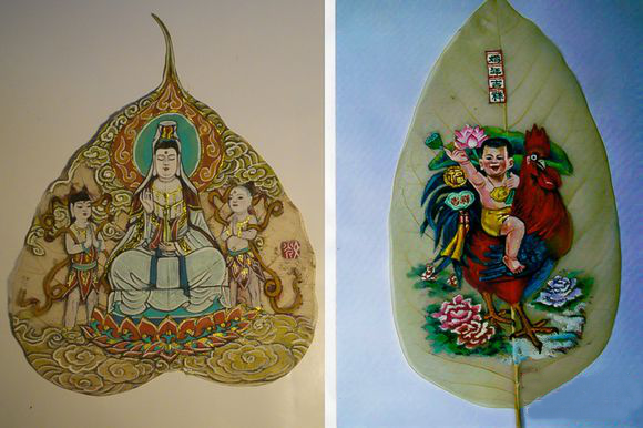 After 100 to 200 leaves go through more than 30 procedures including drying, soaking, and brushing off the leaf flesh to create the leaf veins, only about twenty to thirty leaves remain suitable for painting. The processing time for large leaves takes about one year, while smaller leaves require nine to ten months.